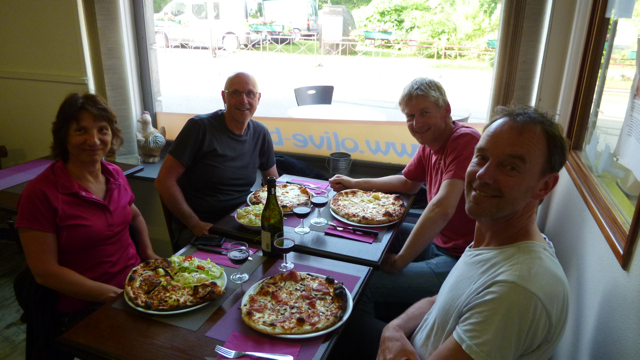 20:00 Restaurant du Donon heeft tenminste wel wifi. De patron weet dat nog niet, maar zijn zoon(?) gelukkig wel. Effe lekker bijtanken dus na een paar dagen zonder internet. Met bier en pizza er bij, wie doet me wat.